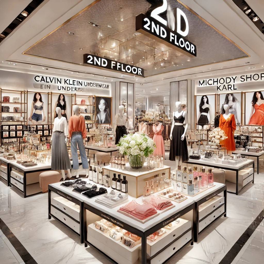 2F:少女裝、飾品配件、香氛。品牌包括:CALVIN KLEIN UNDERWEAR、CHIARA FERRAGNI+KARL、Dior、Floris LONDON、JILL by JILLSTUART、MICHAEL KORS、SABON、THE BODY SHOP。
